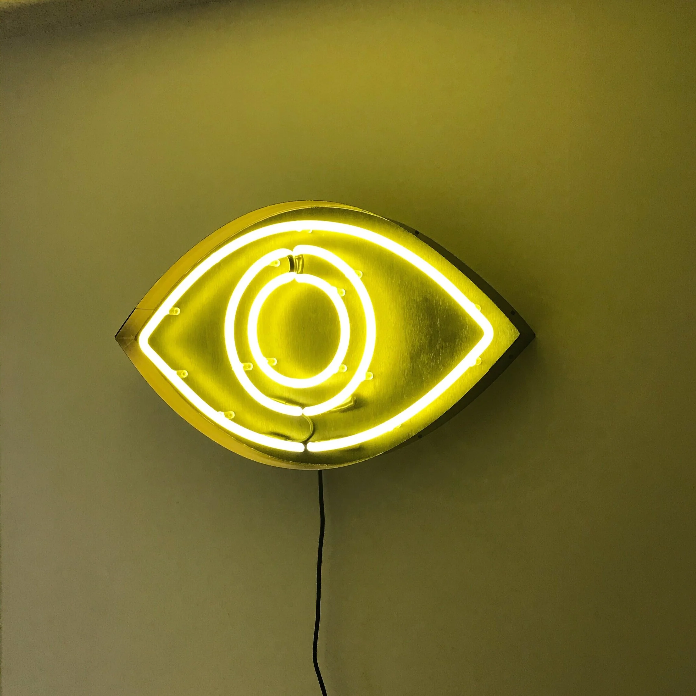 yellow neon, ebonized plywood, painted aluminum, electrics, 2019.