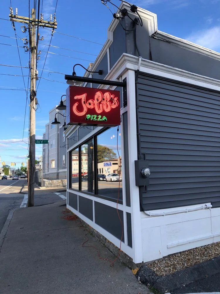 Neutral white neon border mounted to existing hand-painted sign