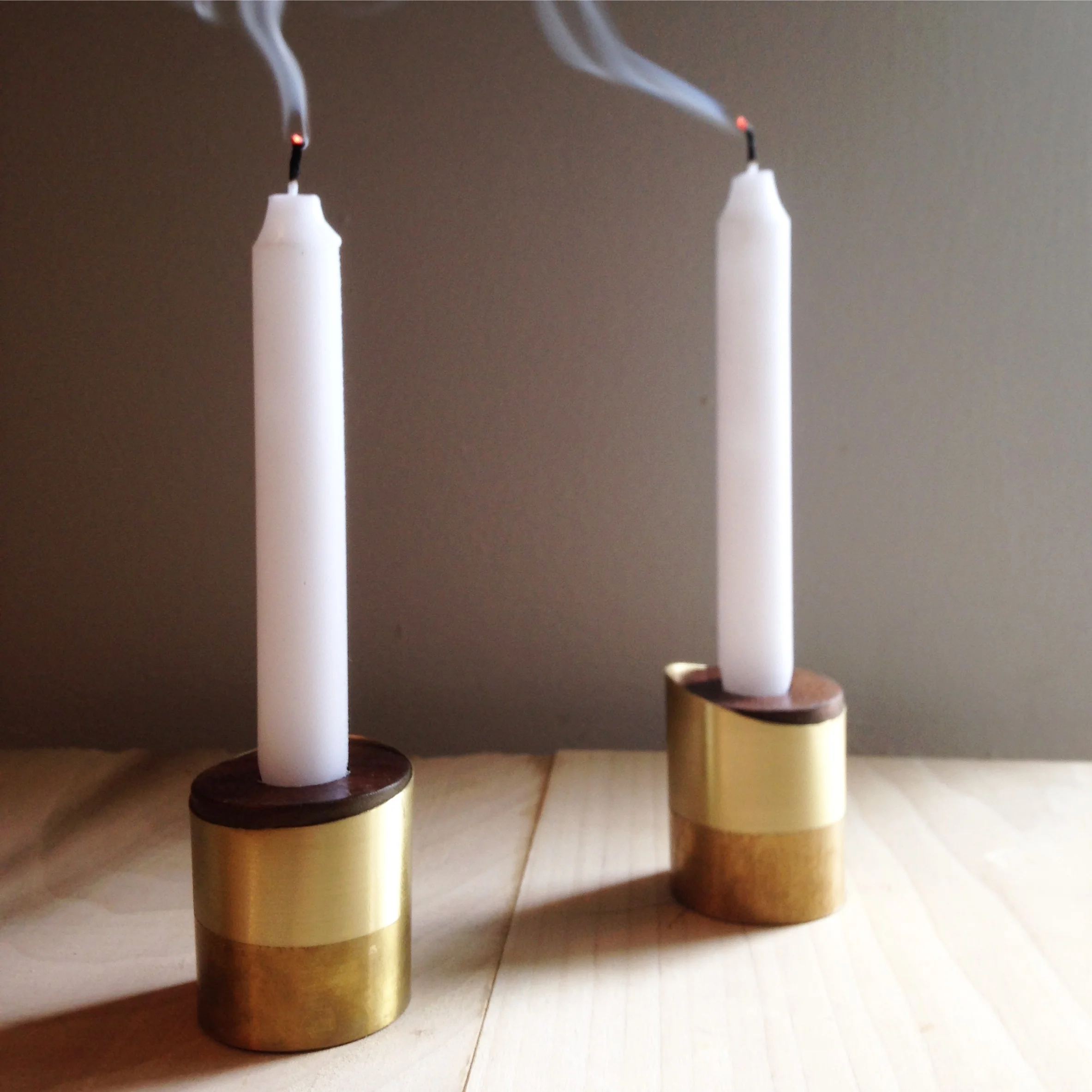 Brushed and raw brass, walnut, candle strike, 2017-present.