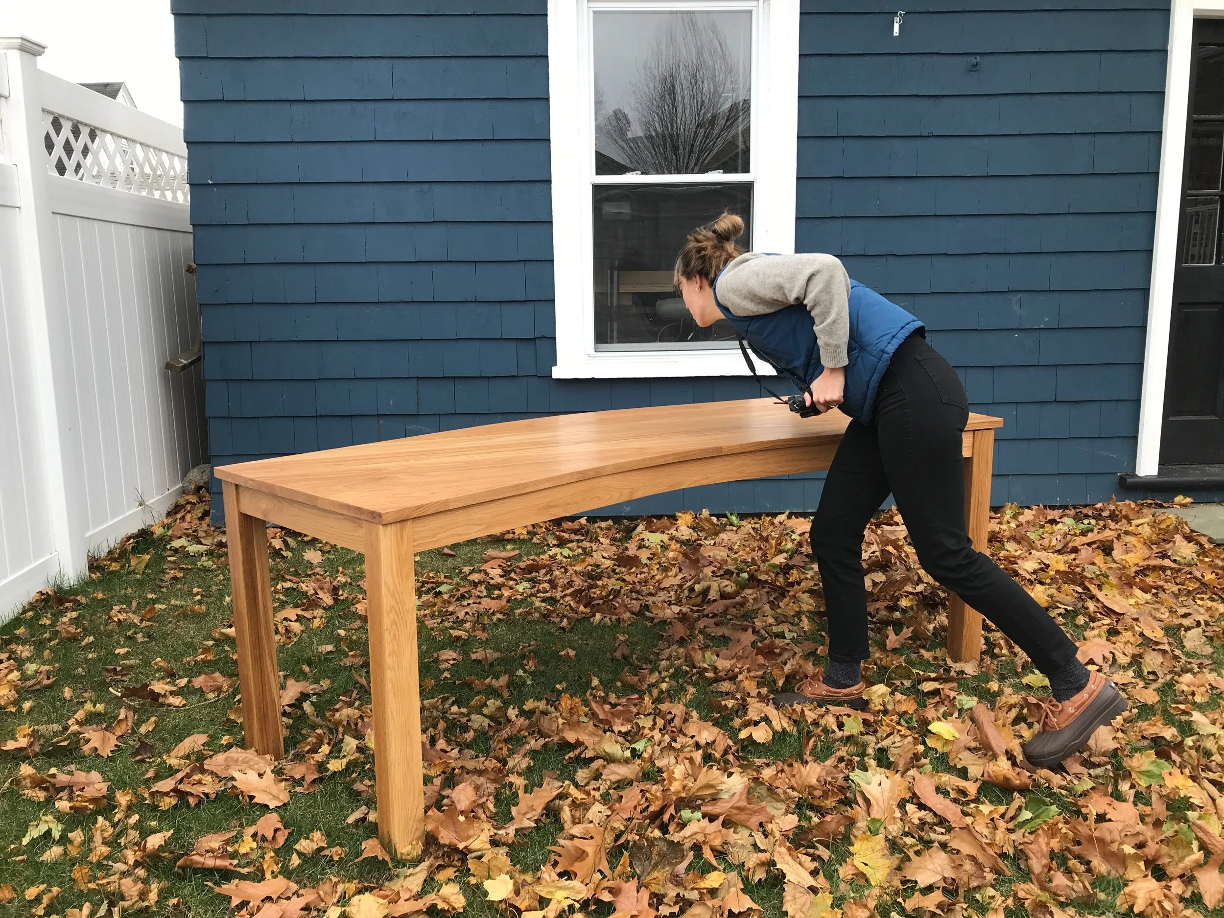 Commissioned White Oak desk custom fit to a bay window.